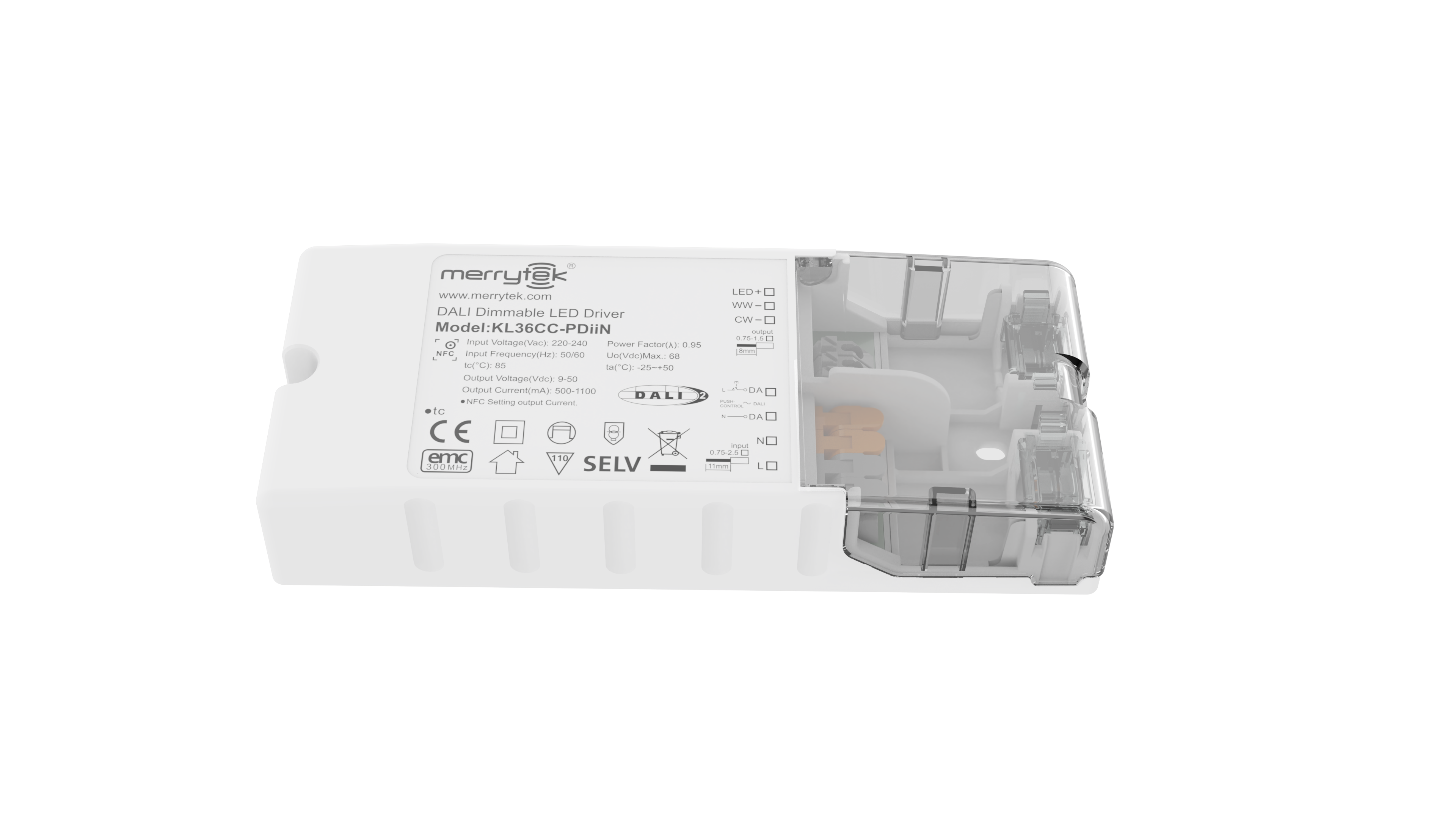 36W NFC programmable DALI DT8 LED driver constant current 500ma to 1100ma output
